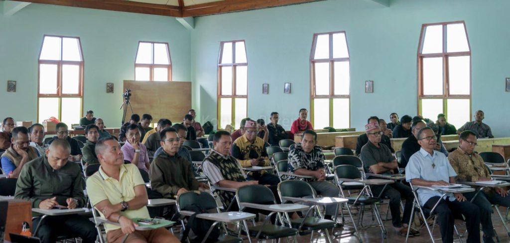 KEUSKUPANRUTENG.ORG – Kevikepan Ruteng mengadakan Sidang Monitoring 2 Tahun Pastoral Ekaristi Transformatif yang diikuti oleh 25 pastor paroki, pastor rekan, para Ketua Pelaksana DPP-DKP dan Ketua-ketua Seksi Liturgi. Pada hari kedua kegiatan Sidang, Jumat, 22 Agustus 2025 dihadiri langsung Direktur Pusat Pastoral (PUSPAS) Keuskupan Ruteng, RD Dr. Martin Chen. Tampak hadir Vikep Ruteng, RD Dyonysius Osharjo, Ketua Komisi Katekese, RD Stanis Harmansi, juga RD Thomas Julivadis Tanto dan tim PUSPAS.