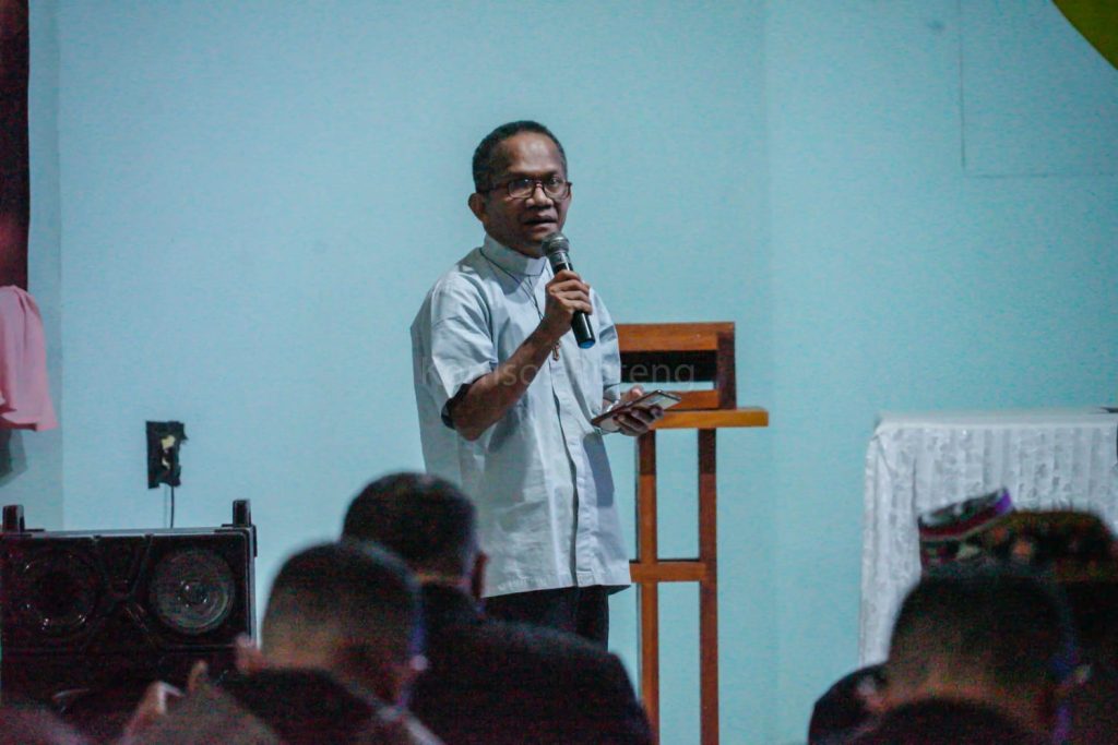Vikep Ruteng, RD Dyonysius Osharjo saat menyampaikan sambuatannya membuka kegiatan Sidang Monitoring 2 Tahun Pastoral Ekaristi Transformatif sekevikepan Ruteng yang dihadiri para pastor paroki, pastor rekan dan jajaran pengurus DPP dari 25 paroki di Rumah Kevikepan di Kuwu, Kamis, 21 Agustus 2025. (Foto : KOMSOS KEUSKUPAN RUTENG)