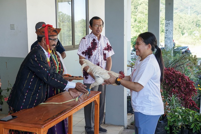 Kehadiran tim dari Bali dan luar negeri disambut secara meriah oleh panitia dari Keuskupan Ruteng dengan adat Manggarai, yaitu Manuk Kapu dan Kepok — sebuah tradisi penyambutan tamu terhormat yang sarat makna persaudaraan dan penghargaan. Dalam suasana penuh keakraban itu, terlihat kehangatan antara panitia dan tamu undangan.