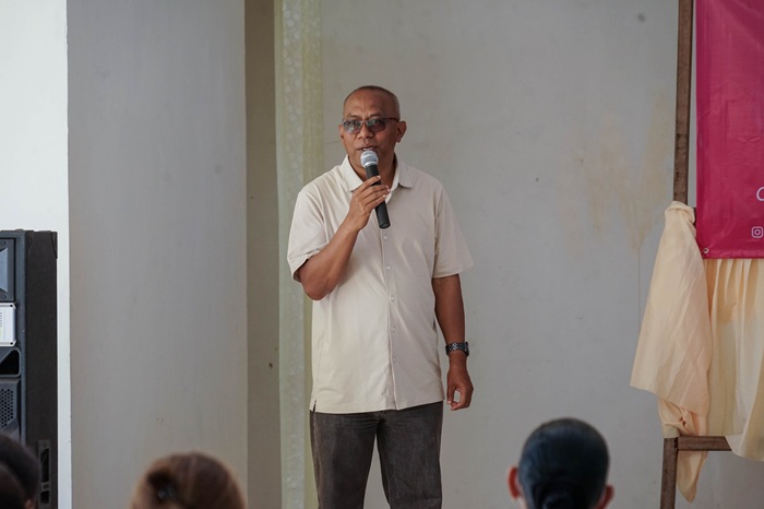 Ketua Komisi Kesehatan Keuskupan Ruteng RD Pepy Bora saat menyampaikan sambutan pada saat kegiatan seminar dan screening kanker payudara pada Sabtu, (25/10) pagi. (Foto: KOMSOS RUTENG)
