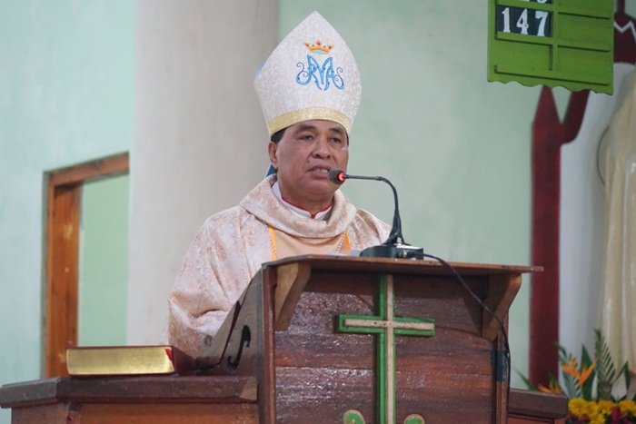Uskup Ruteng, Mgr. Siprianus Hormat saat menyampaikan homili dalam misa puncak Festival Lembah Sanpio di Kisol, Senin malam, 8 September 2025. Perayaan Ekaristi ini menjadi puncak dari keseluruhan event religi, pariwisata dan ekonomi-kreatif yang berlangsung sejak tanggal 4 September. (Foto : SASHA/KEUSKUPANRUTENG.ORG)