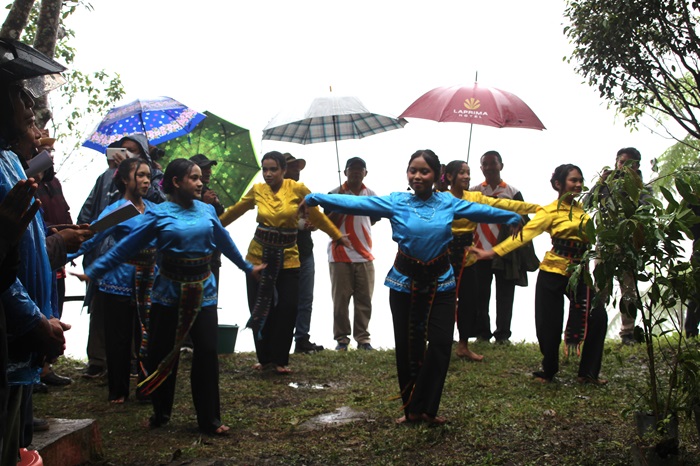 Di bawah derai hujan deras, 6 penari dari OMK Paroki Santu Mikael Kumba tampil membuka Ibadat Ekologis diiringi lagu Laudato Si O Mi Signore. Mengenakan busana adat berwarna kuning dan biru mereka mengajak semua orang yang hadir untuk mengagumi alam ciptaan Tuhan yang berlimpah keindahan dan kesuburan pada tanah. Pada altar yang diletakkkan di bawah atap booth tampak selebran, Mgr Siprianus Hormat didampingi Direktur Pusat Pastoral (PUSPAS) Keuskupan Ruteng, RD Dr. Martin Chen dan Ketua Komisi Liturgi, RD Andi Jeramat.