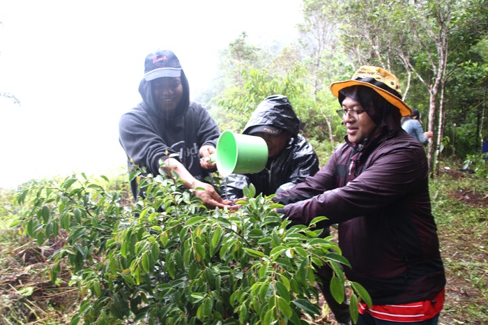 Hampir seribu anakan pohon ditanam oleh semua petugas Kantor KSDA, aparat kepolisian dan semua umat yang hadir. Mereka berjibaku menghijaukan Golo Lusang dengan satu semangat yang sama : kasih yang tulus pada ibu bumi. Berbagai jenis pohon yang ditanam pada kesempatan ini, seperti Ara, Beringin/Langke, Ngantol, dan Namut. Derasnya hujan tak menyurutkan antusiasme semua yang hadir untuk melakukan penghijauan di lokasi-lokasi yang telah ditentukan di Bukit Golo Lusang.