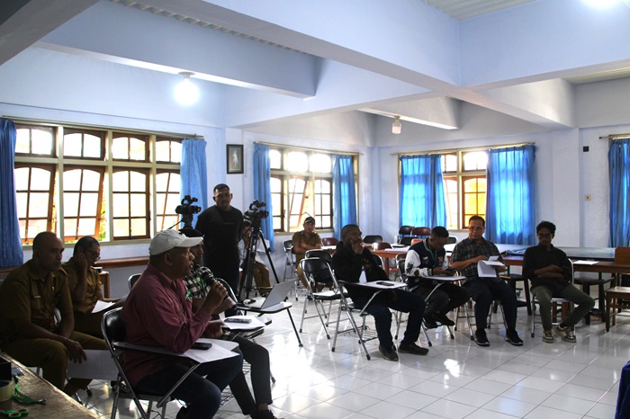 Para wartawan dari media online, cetak dan televisi saat menghadiri acara konferensi pers yang diadakan oleh Panitia Festival Golo Curu tahun 2025 di Aula Pusat Pastoral di Jalan Pelita, Ruteng. Pada kesempatan ini para pekerja media juga diberi kesempatan untuk menanyakan berbagai hal yang berhubungan dengan FGC. (Foto : SASHA/ KEUSKUPANRUTENG.ORG)