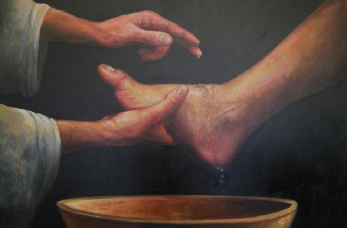 Akhirnya peristiwa pembasuhan kaki oleh Yesus mengarah pada peristiwa pengurbanan-Nya di kayu salib. Kamis Putih mengalir ke Jumat Agung. Pembasuhan kaki memperlihatkan pelayanan dan pengurbanan Yesus yang sepenuhnya dan total bagi manusia. Dia tidak hanya melayani, tetapi sampai sehabis-habisnya. Dia tidak hanya berkurban terapi sampai mengurbankan diri sampai tetes darah terakhir. Inilah arti cinta Kristiani yang sejati dan benar.