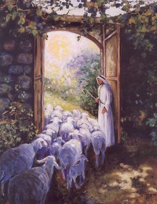 “Akulah pintu kepada domba-domba.” Yesus melukiskan diri-Nya pertama-tama ibarat pintu kandang hewan, yang memberi perlindungan dan kenyamanan kepada domba-domba yang tinggal di dalamnya. Tapi sekaligus melalui pintu ini domba-domba dapat keluar masuk untuk mencari makanan di padang rumput yang hijau. Melalui Yesus orang memperoleh “makanan”, yakni kekuatan yang menghidupkan, menyegarkan dan membahagiakan.