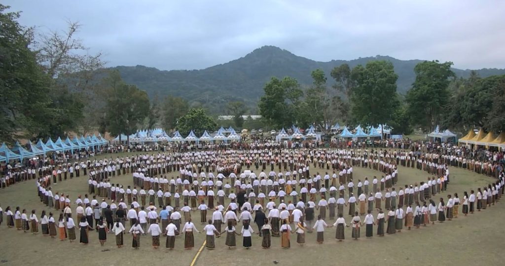 Tarian kolosal dalam Festival Lembah Sanpio 2025 yang diikuti 600 pelajar dan menampilkan atraksi seni yang speltakuler. Mengenakan busana adat Manggarai mereka mengekspresikan indahnya budaya Manggarai yang kaya akan filosofi hidup. (Foto : KOMSOS KEUSKUPAN RUTENG)