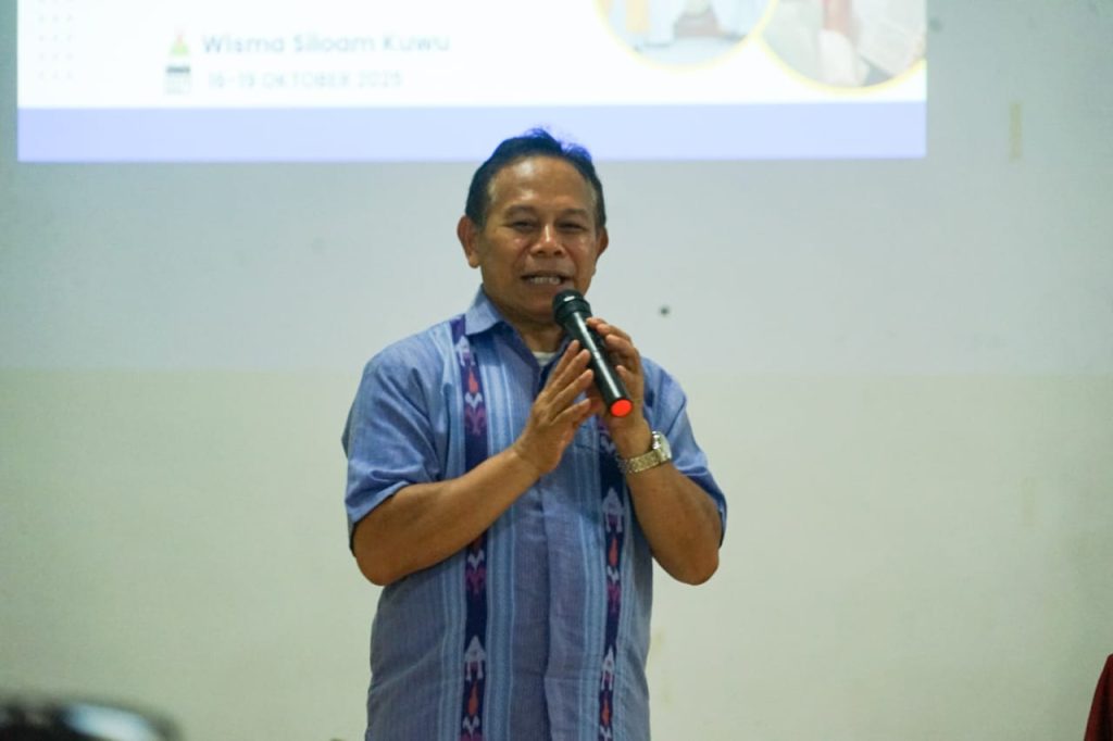 Vikjen Keuskupan Ruteng RP Sebastianus Hobahana, SVD ketika menyampaikan sambutan pada kegiatan fasilitator Kitab Suci. (Foto: KOMSOS KR)