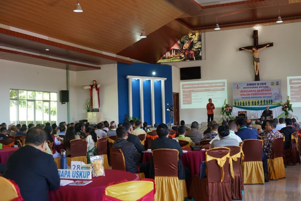 KEUSKUPANRUTENG.ORG – Hari kedua Sidang Sinode IV Sesi II Keuskupan Ruteng yang mempertajam 3 bidang pelayanan gereja, yakni Pewartaan, Pengudusan, dan Persekutuan, di Rumah Retret Wae Lengkas, Ruteng, Selasa, 14 April 2026, menghadirkan narasumber/pembicara RP Dr. Johanes Haryatmoko, SJ pengajar di Paska-Sarjana Komunikasi FISIP UI, juga di S2 adan S3 Perguruan Tinggi Ilmu Kepolisian (PTIK) di Lemhannas. Dimoderatori RD Patris Suryadi, sesi ini mendapat antusiasme peserta.
